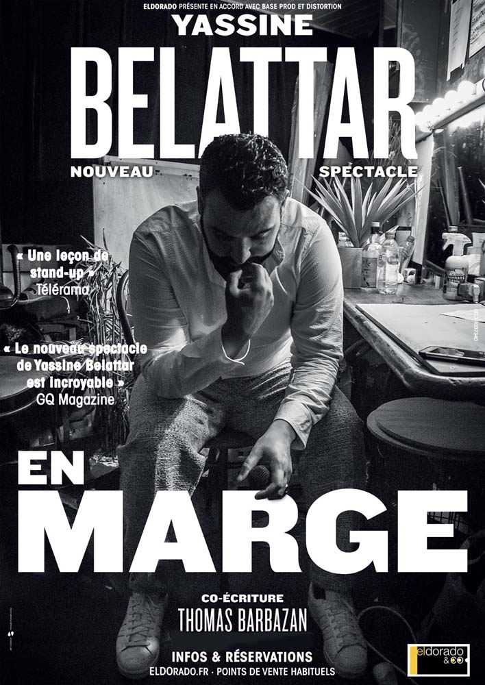 En 2019, le Numérique remplace l’analogique. Yassine Belattar est recruté par la plateforme Deezer pour réaliser un podcast hebdomadaire. Parallèlement, il lance son 2e spectacle tant attendu : « En Marge », co-écrit encore et toujours par Thomas Barbazan. Un spectacle qui remplit le Théâtre de Dix Heures 3 fois par semaines depuis la rentrée. Preuve que Yassine peut être un personnage engageant en restant un homme engagé.