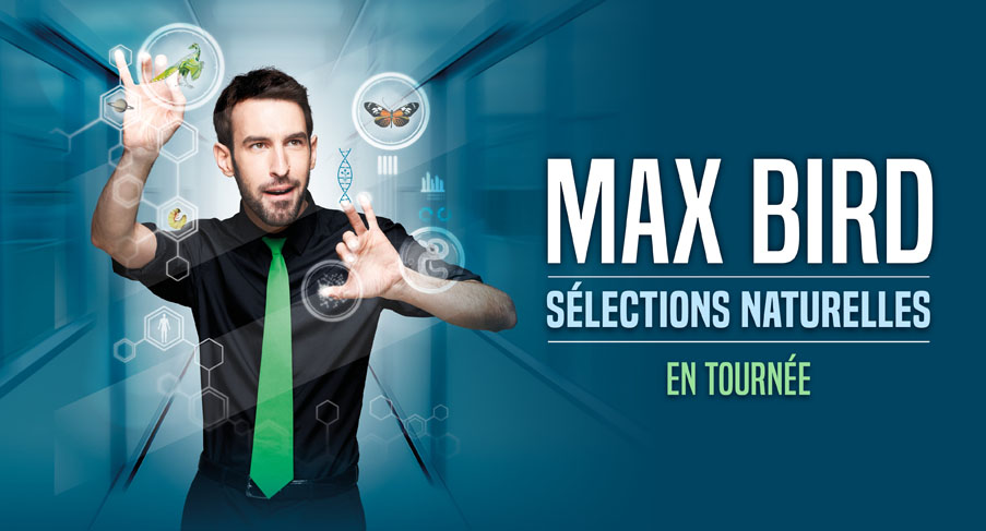 Attachez vos ceintures, on part en voyage (enfiiin !) mais sans avion, sans bateau, sans aucun autre moyen de transport que le pouvoir de notre imagination. Avec le spectacle « Sélections Naturelles », Max nous transporte à travers le temps et l’espace et apporte les merveilles de la Nature jusqu’à vous. Il a sélectionné les exemples les plus frappants dans diverses catégories pour vous toucher au cœur et vous permettre de briller grâce à des anecdotes hilarantes. En mélangeant imitations, jeu d’acteur et texte amusant et pédagogique, Max nous reconnecte au plaisir d’être curieux. Un vrai tour du monde, sans décoller de votre siège !
