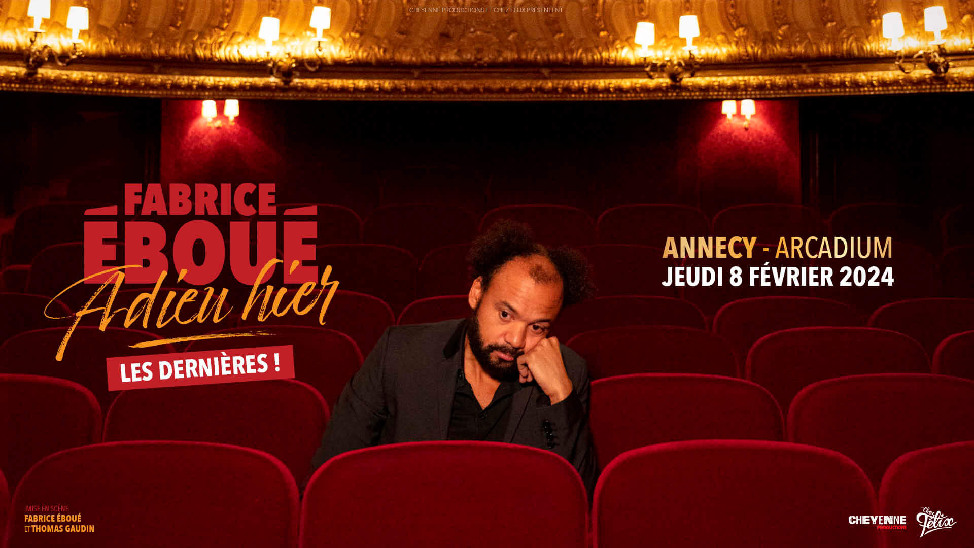 Le spectacle Adieu Hier rencontre un véritable succès à Paris et en tournée ! Dès janvier 2024, Fabrice Eboué revient sur scène, pour une nouvelle série de dates d’Adieu Hier – les dernières ! La plume acérée et l’art de rire de tout de Fabrice Eboué, nous garantissent de partager un moment d’humour mémorable !